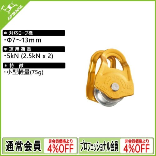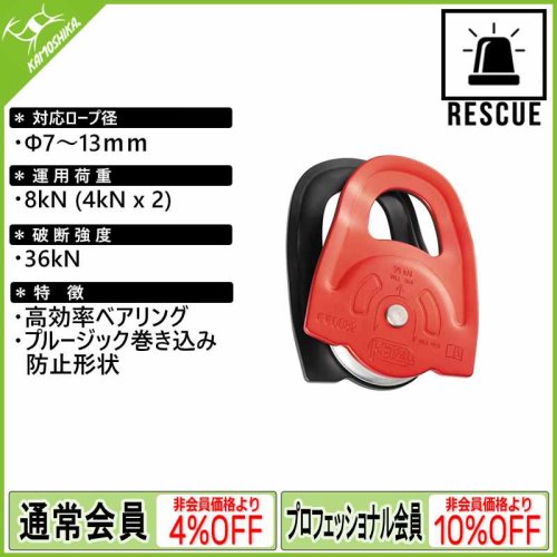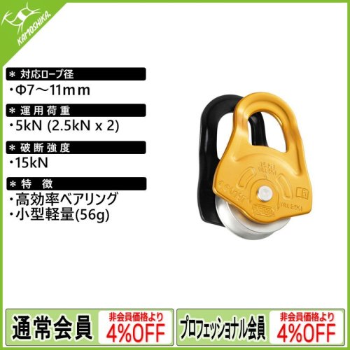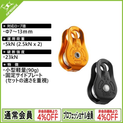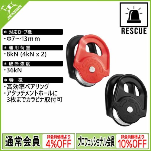 - 破断荷重: 12kN(プーリー)、4kN(セルフジャミングプーリー)