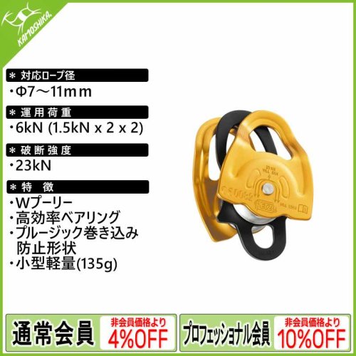 ダブルプーリー『ジャグ』と併用し、4: 1 のホーリングシステムを作成するためのダブルセルフジャミングプーリーです。シールドボールベアリング内蔵の滑車により高い効率を発揮します。