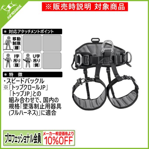 トップ JPより、日本国内の「墜落制止用器具の規格」(フルハーネス)に適合しています。