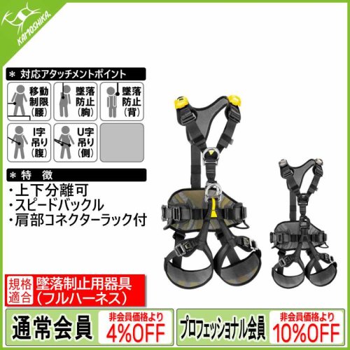 本製品は「墜落制止用器具の規格」(フルハーネス)に適合しています。