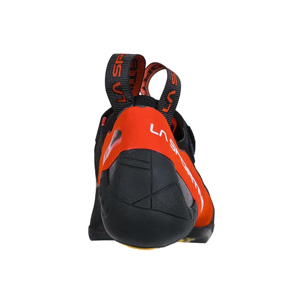 高い足技を持つクライマーは、ホールドを足で掴むように登りますが、スクワマのソールに入った三角のスリットはつま先の自由度を高め、ホールドをキャッチしやすい構造になっています。また、柔軟性の高さからスメアリングにも適しており、ハリボテにベタっと足を置いても安定。様々なフットワークに対応します。踵部には新採用のテクノロジー「Sヒール」を搭載したハイパフォーマンスモデルです。