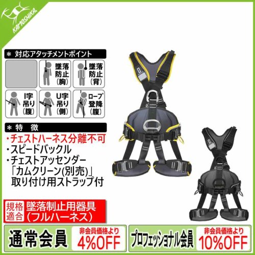 ※ロープアクセス用ハーネスの腹部アタッチメントポイントに、別売りのEN362規格適合のカラビナを用いて接続します。