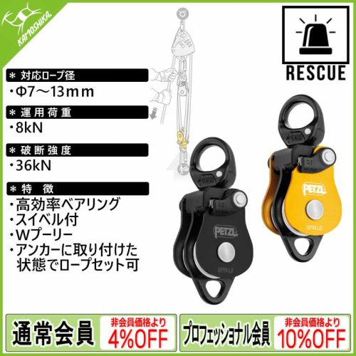 プーリー『スピン L1』は、ロープの着脱のたびに支点から器具を取り外す必要がないため、引き上げやディビエーション、チロリアンブリッジの設定を効率化できます。直径の大きい滑車で、シールドボールベアリング内蔵のため高い効率を発揮します。スイベルにより荷重がかかった状態でもプーリーの向きを変えることができ、またカラビナやロープ、スリングを直接連結できるため、作業が容易です。