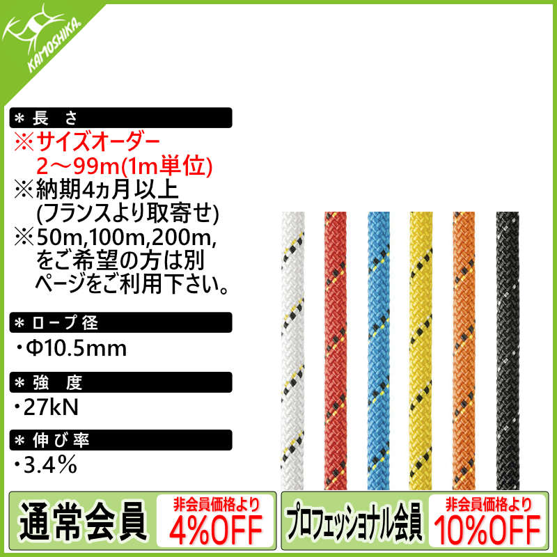 【切売り 2m〜99m※1m単位】PETZL ペツル パラレル 10.5mm特注ロープ [受注発注商品] [28]