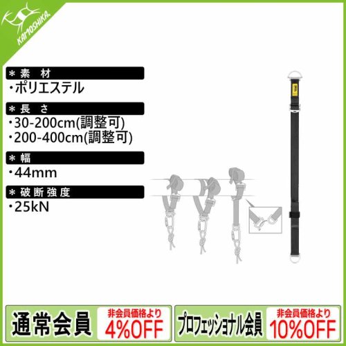 『コネクション フィックス』は2つの鍛造スチール製アタッチメントポイントを備えた、耐久性に優れたアンカーストラップです。支点に直接連結したり、構造物に回し掛けしたりと複数の設定でアンカーの作成が可能です。3種類の長さから選択できます: 100 cm、150 cm、200 cm。