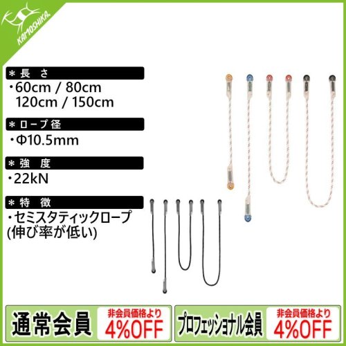 10.5mmポリアミド製のセミスタティックロープでつくられたポジショニングランヤード。ショックアブソーバーなしのランヤードのため、ポジショニング用もしくはアンカーとしてのみ使用してください。