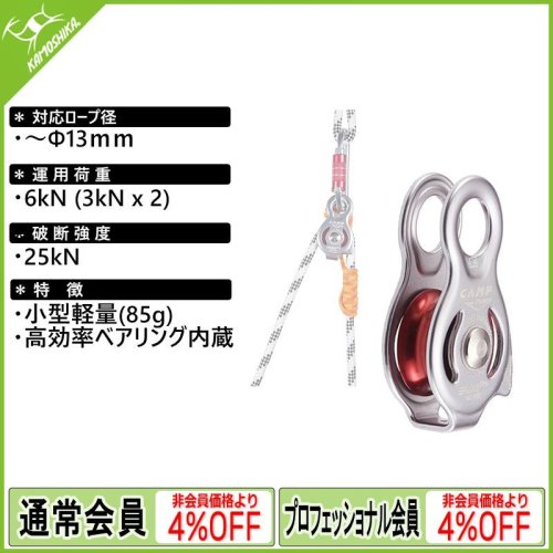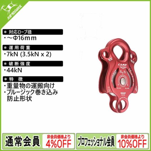 重量物の運搬や複雑な作業にも対応する高強度の多機能プーリーです。大型ホイール、メインアタッチメントには3つのカラビナを装着でき、大型ボトムアタッチメントポイント、プログレスキャプチャーシステムのリンク、ポジショニング、アタッチメントのための2つのセカンダリーアタッチメントポイントをサイドに装備しています。16mmまでのロープに使用できます。プルージック・マインディング、セルフロッキング・ノットを両側に取り付けることができます高効率で高速での集中的な使用を可能にする密閉型ボールベアリング。効率:97%。アルミ合金製のボディとホイール、ステンレス製のアクスル。