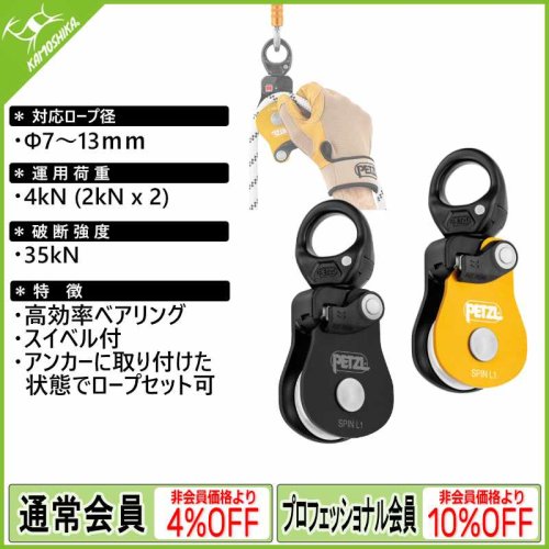 一方向にのみ回転する多面的な形状の滑車により、引き上げの際には高い効率を発揮し、降下の際には広い摩擦面により制動力が得られます