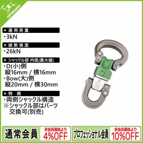 Enigmaは、コネクタを使用せずに金属デバイスとテキスタイルデバイスの両方に直接接続できる、大きなピボットシャックルを備えた開閉式スイベルです。回転するスイベルと回転するシャックルを組み合わせることで、信じられないほどの範囲の向きと動きが可能になります。ユニークなデザインによって、1本のネジ(製品に付属のキー)でスイベルと両方のシャックルをオープンにすることが出来ます。セーフティロックシステムは独立していて、デバイスの作業方向と反対の回転であるため、安全かつ簡単に組み立てることができます。ボールベアリング付きのステンレス鋼コアは、アルミニウム合金の本体とリングと組み合わされて、非常に高い破壊強度(23kN)と運用荷重(5kNまで)を実現します。シャックルには大きな開口部(18 mm)と内部作業スペースがあり、同じリングに複数のデバイスを接続できます。