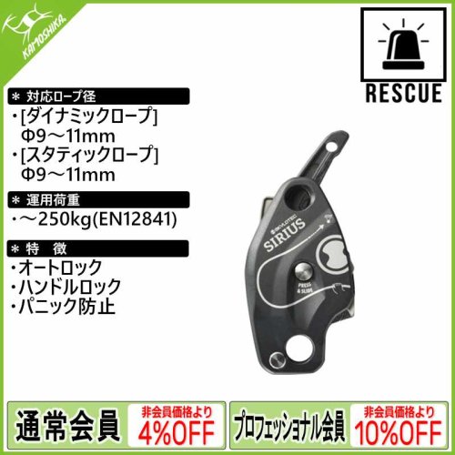 ロープ有効径が幅広いので径の細いシングルロープでも確実に安心して使用できます。また産業用下降器としても認定されています。ダブルストップ機構のパニック防止付きです。
