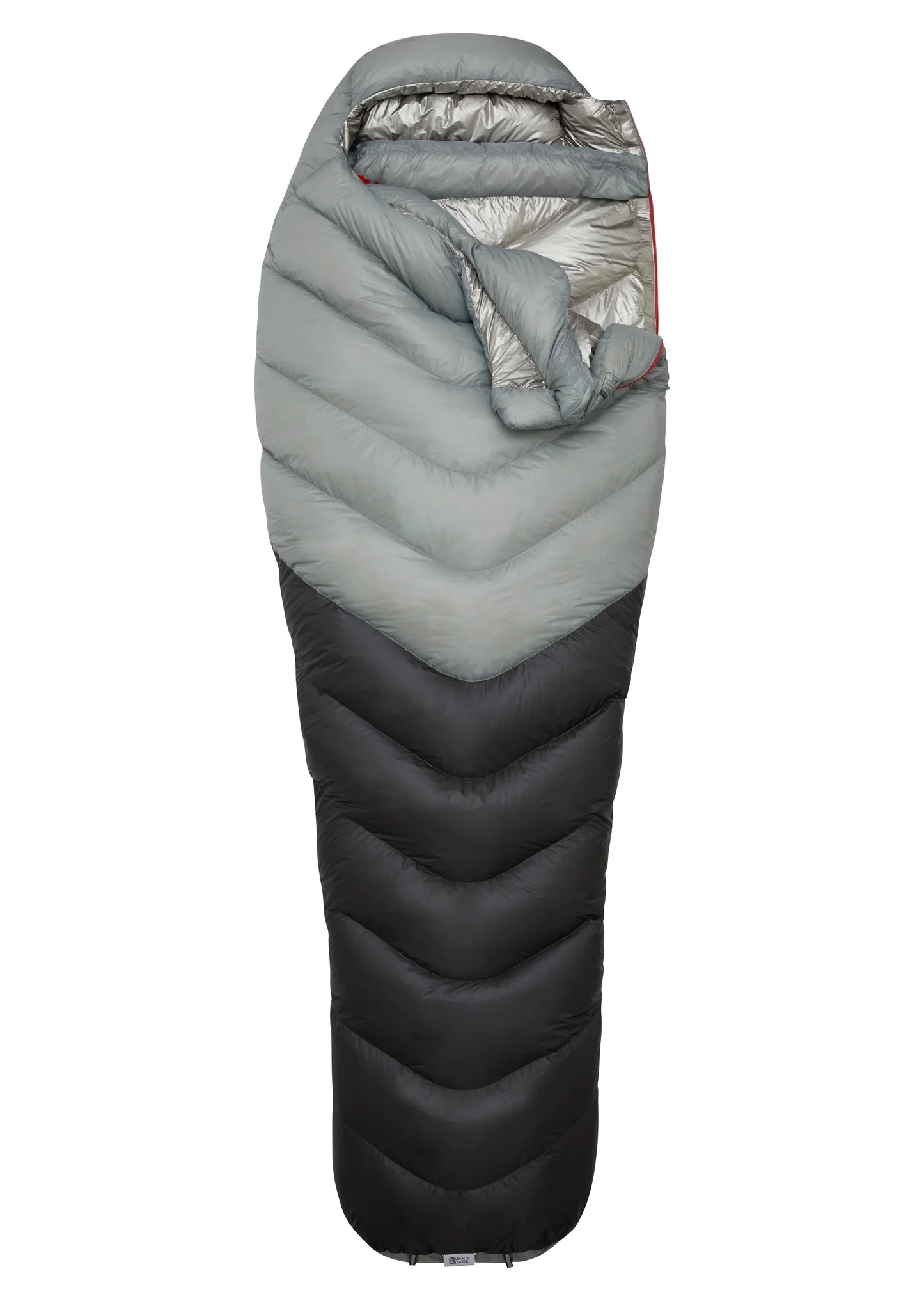 数々の賞を受賞した「Mythic Ultra 360」は、40年にわたる山での経験をもとに、社内の技術者によって設計・製造された、世界で最も先進的な軽量スリーピングバッグのひとつです。表地には非常に最軽量の10デニールリップストップナイロンを使用し、900フィルパワー以上の高品質なヨーロピアングースダウンを充填していますが、本当に特別なのは裏地です。世界初のサーモイオンライニングテクノロジー(TILT)を採用し、繊維にチタンコーティングを施して熱を体に反射させることで、重量や通気性、機能を犠牲にすることなく、保温性を大幅に向上させています。