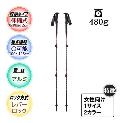 アルミニウム合金製トレッキングポール。付属のスノーバスケットに交換すればスノーハイクまで対応。同社の「トレイル」より太い径のシャフトを採用し、ハードな使い方にも耐えるモデル。