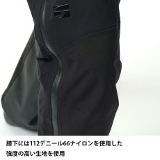 2023年秋冬のリニューアルでは、設計と生地使いを見直し。膝上には高ストレッチな50デニール4WAYメカニカルストレッチ生地を、よりタフさが求められる膝下には112デニール66ナイロンの高強度なエバーブレス生地を採用。2タイプの生地を使い合わせることで、トータルの重量を抑えながら、強度と動きやすさを高い次元で両立しました。