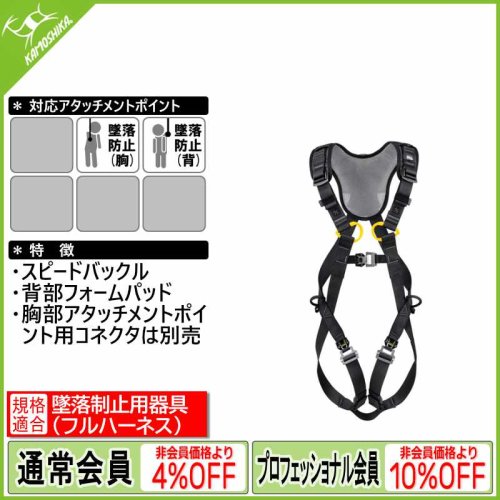 本製品は「墜落制止用器具の規格」(フルハーネス)に適合しています。