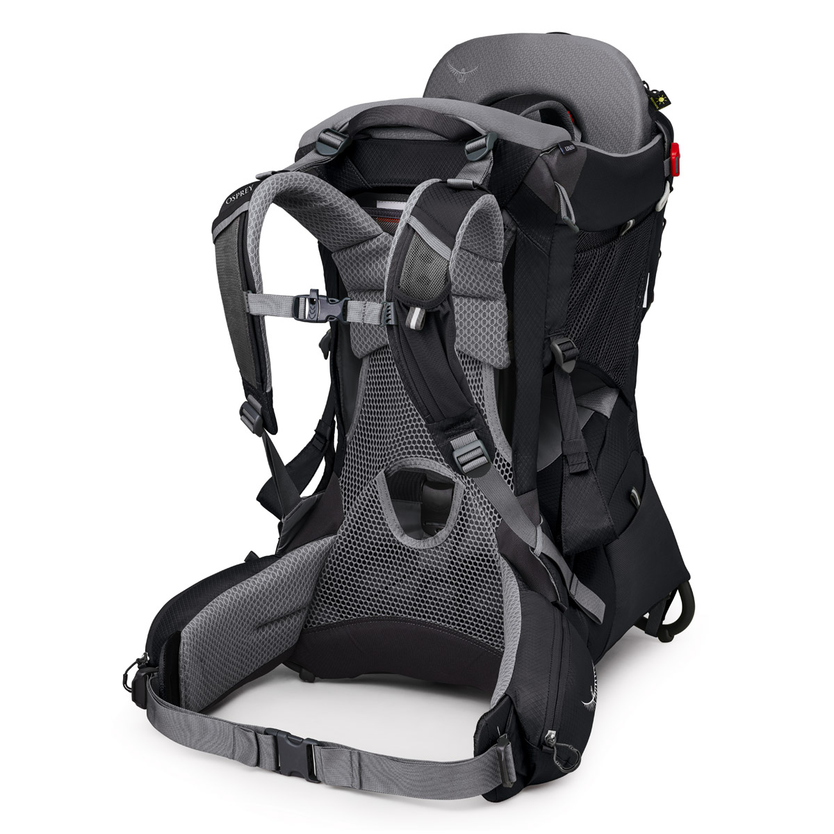 チャイルドシートはフレームとパッド入りで安全性が高く、アウトドアでも安心して子供を背負うことができます。ソフトな肌触りの座面は、取り外して丸洗いが可能。チャイルドセーフティハーネス、シート、フットストラップは子供の体型に合わせて調整できます。標準装備のビルトインサンシェードは子供を強い日差しから守るUPF50。ジッパー付き専用ポケットに内蔵されており、素早く展開・収納が可能です。