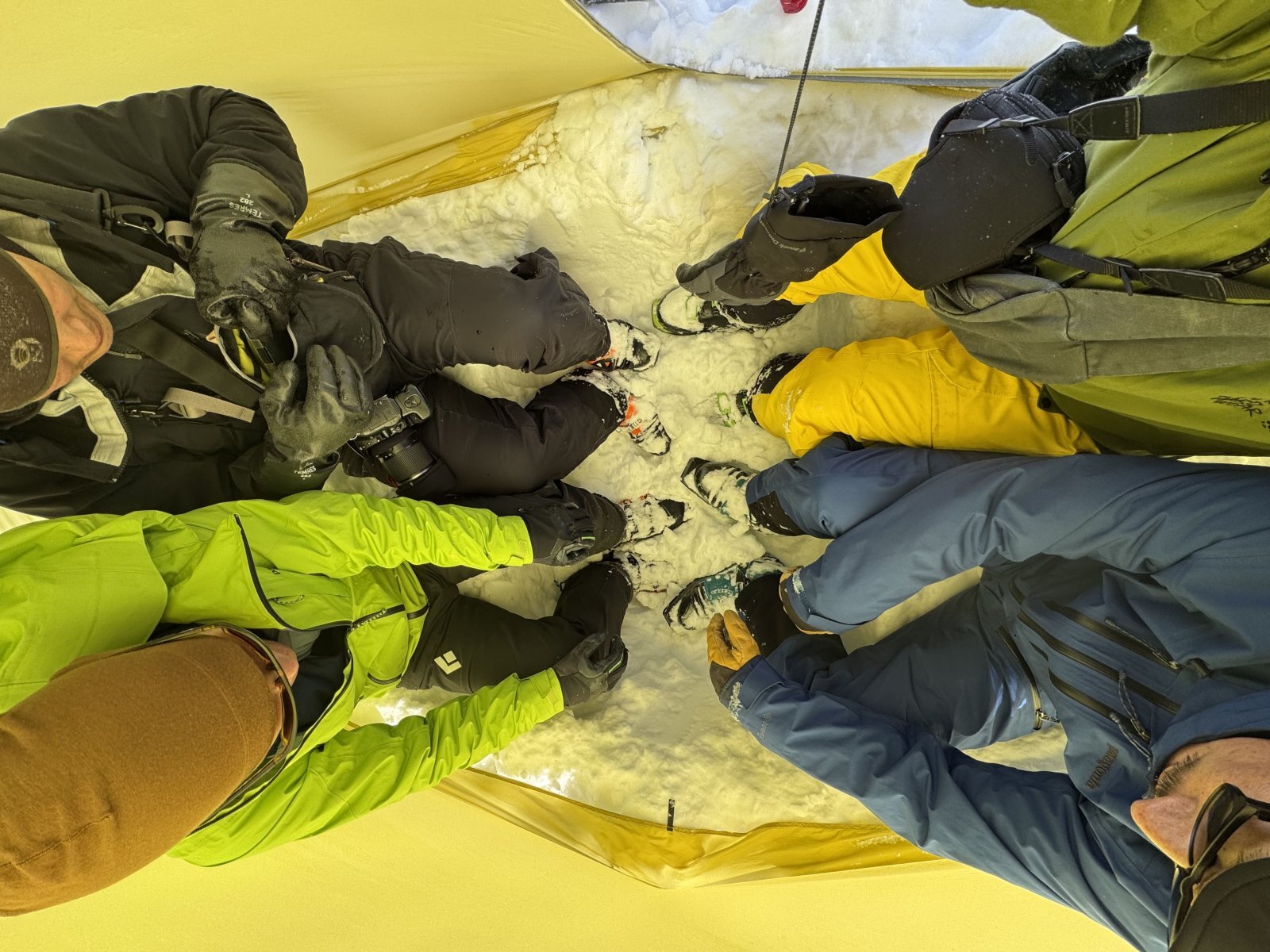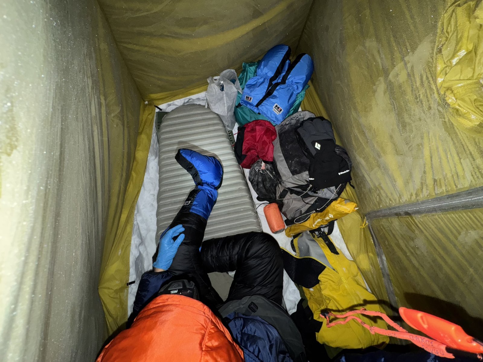 - 悪天候時やリスクの高い傾斜地でアイゼンを装着したまま素早くビバーク体勢へ