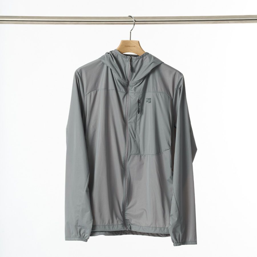 シーム処理をしていないため完全防水ではありませんが、3層構造で軽量かつ高い防風性を発揮します。