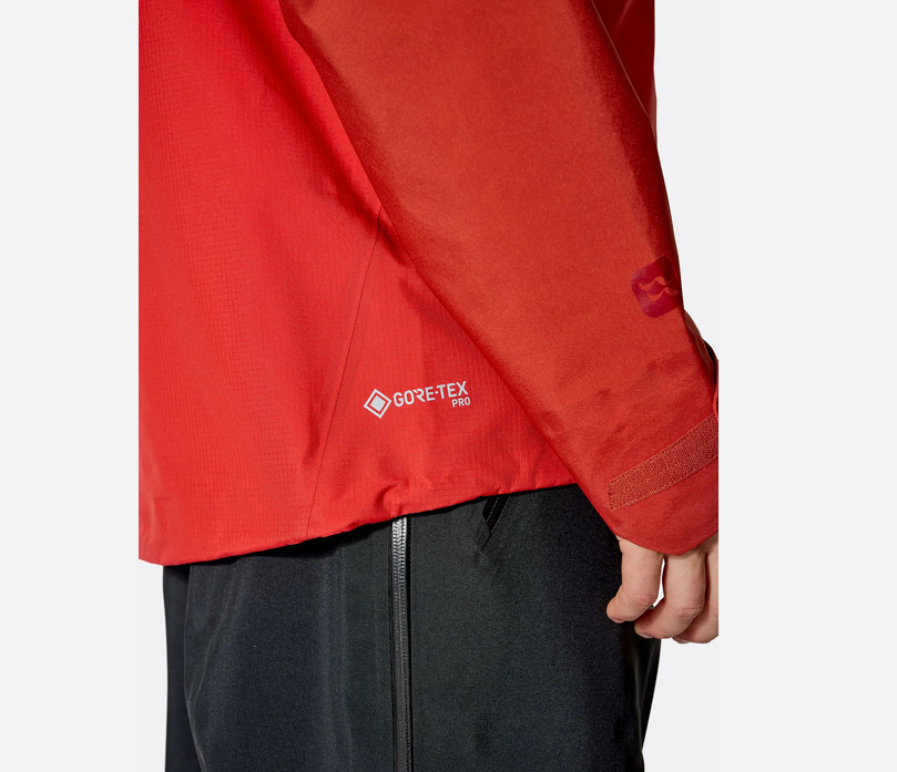 3層構造のGORE-TEX Proを採用したこの防水ジャケットは、耐摩耗性と軽量性を備えています。