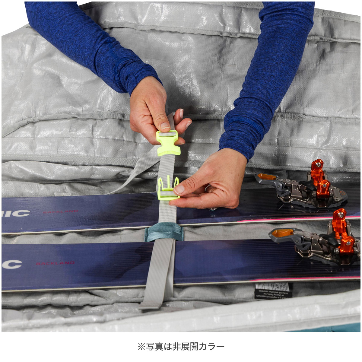 スキーやスノーボードの運搬に適したキャスター付きスキーケース。メインの生地には耐久性と耐水性に優れたナノタフを使用し、頑丈なシャーシと大型ホイールを装備しています。195cmまでのスキーやスノーボードを1〜2組の収納が可能で、内部や外部に板を固定するコンプレッション機能を備え、旅行中のギアを安全かつ確実に保護します。