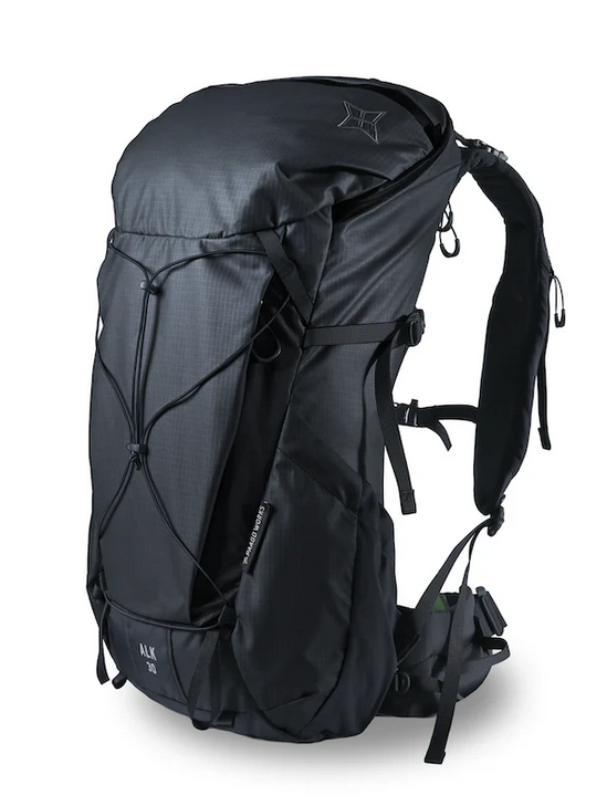 ALK30は、その中でもユニークな背面アクセス構造を採用したモデルです。身体側から大きく開くクイックアクセスにより、荷物の出し入れや整理がスムーズ。内側のドローコードを絞ることで簡易的な2気室として使うこともでき、登山からトラベルまで幅広いシーンに対応します。