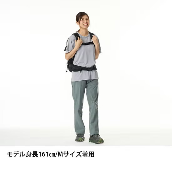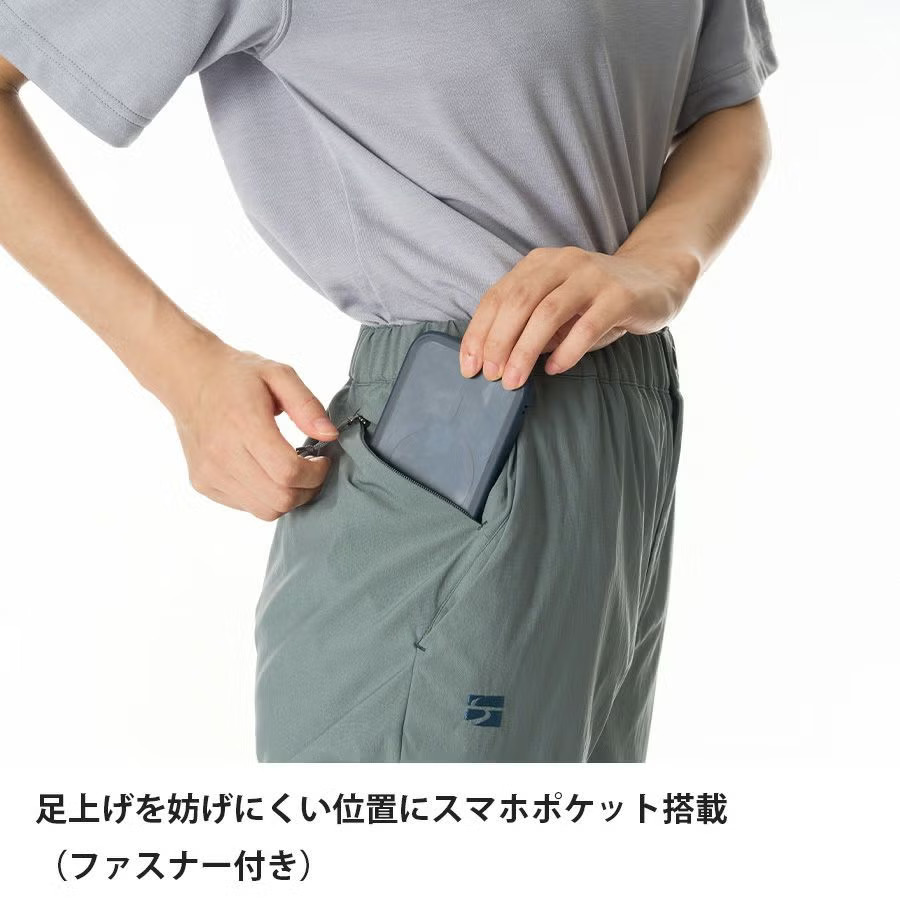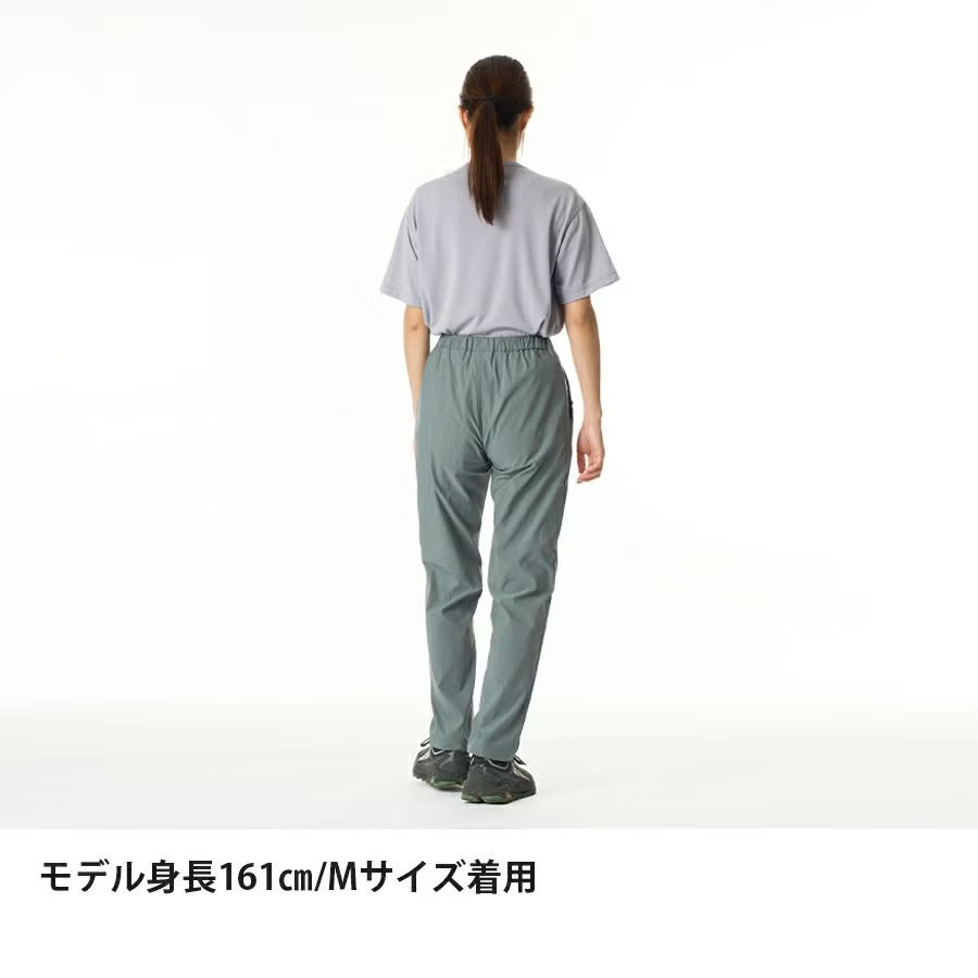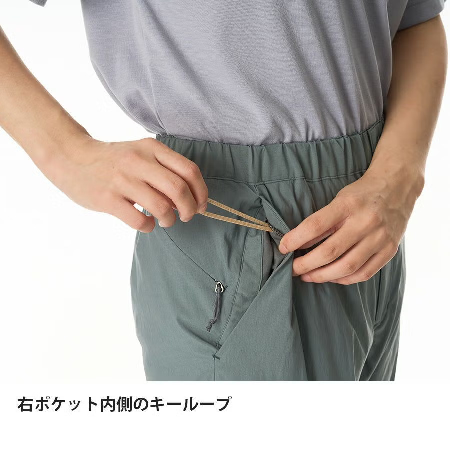 軽量かつ極薄手の生地に、適度なゆとりを持たせたリラックスシルエット。腿まわりにゆとりを持たせつつ裾にかけてややテーパードに。動きに追従し、風が通りやすい。暑い時期の行動でも、軽やかな穿き心地が続きます。