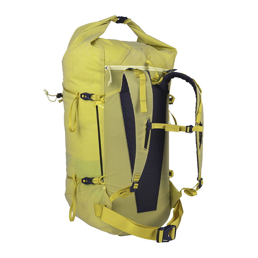 高強度ファブリック構造とロールトップ式の防水クロージャーが、悪天候から最大限の保護力を発揮します。ミニマルでありながら高い機能性を誇るこのバックパックは、ラミネート加工のダブルアイスツールホルダー、カラビナ付きロープストラップ、そしてオプションアクセサリーによるスキーキャリーにも対応しています。薄型のショルダーストラップ、取り外し可能なヒップベルト、そしてフレームにより、アクティビティに合わせて持ち運びシステムを調整できます。また、外側のポケットには重要なギアを簡単に出し入れできます。